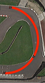 Q: “Following on from Podcast 61 with Ann Morey in which she talked about drawing arcs on track maps to work out ‘the line’, I tried a similar thing for my local kart circuit. The corner I picked is a combination of two fast clockwise corners that need to be treated as one. I plotted the largest diameter circle I could that joined the following three points: 1) the outside edge of the track at turn-in; 2) the apex/clipping point; 3) the outside edge of the track at track out. I also superimposed three karts onto the circuit at these three points. This corner sequence is preceded and followed by decent length straights so I see no obvious reason to compromise/prioritize entry or exit over one another. My question is this: Why is this theoretical line not the fastest, and if it is, why do people not tend to drive it? I see people make roughly that clipping point and that track out, but I don’t see many/any people turning in that late and missing the first apex by that far.”